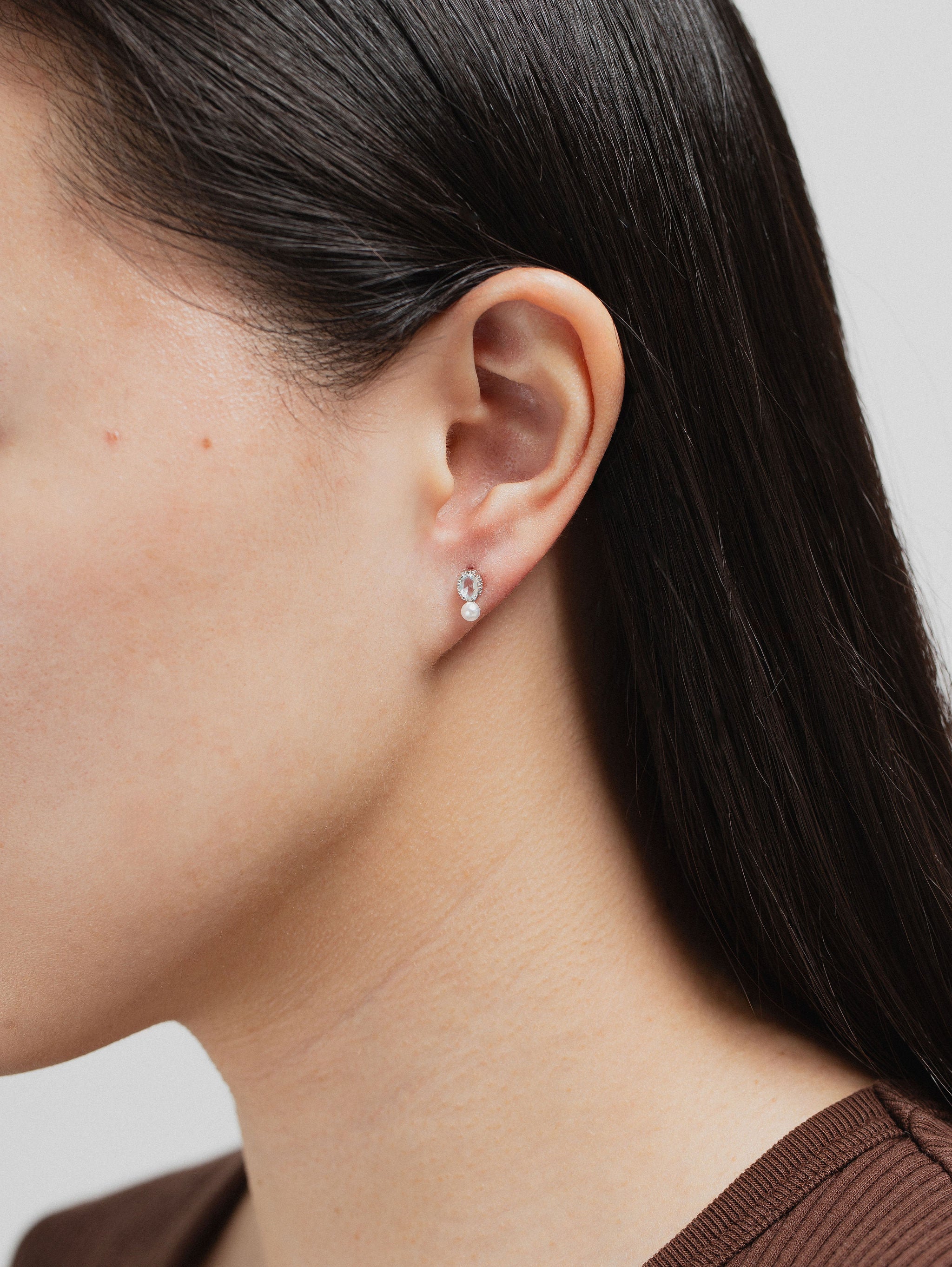 Blue crystal & Pearl stud
