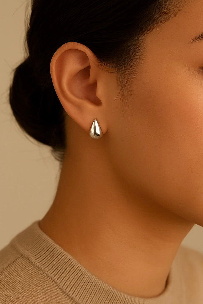 Sterling Silver Puffy Water Drop Earrings